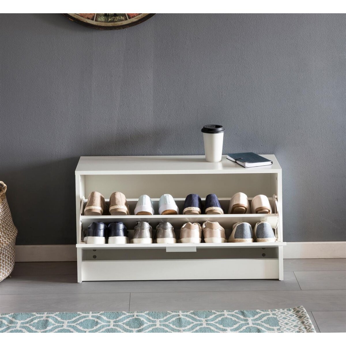- Ein Kippfach mit 2 Unterfächern für Ihre Schuhe